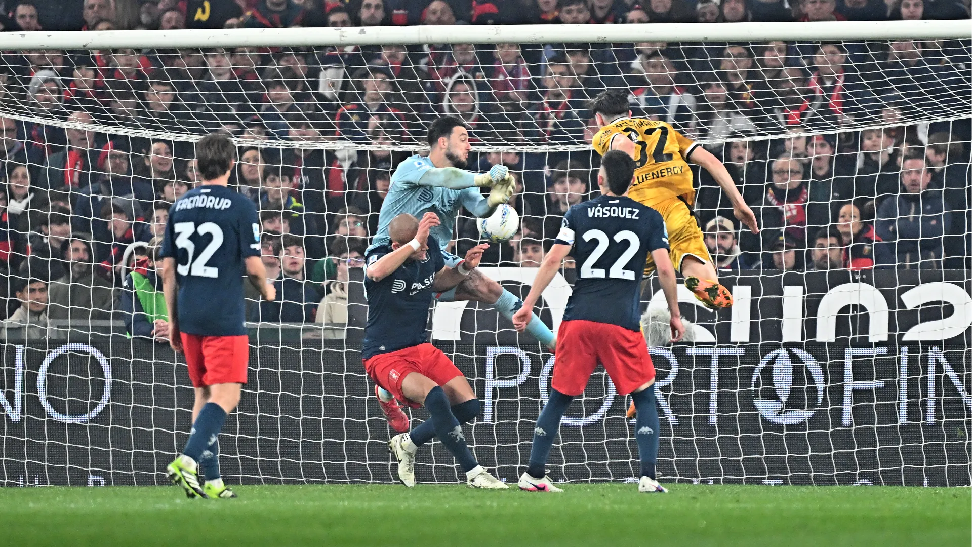 L’Udinese cinicamente passa in vantaggio alla prima vera occasione gol con Ekkelenkamp, servito da Zaniolo al 66′. I rossoblù non demordono e si avvicinano al pareggio con Ellertsson e Norton-Cuffy. All’83’ si scatena la rissa: i giocatori del Genoa accusano i rivali di perdere tempo e dopo un faccia a faccia tra Kamara e Colombo esplode il parapiglia per diversi secondi, con De Rossi che prova a fare da paciere.