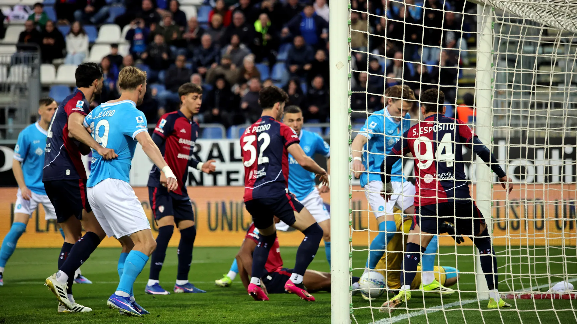 Pisacane si gioca anche la carta Mendy che ci prova subito in acrobazia ma non trova la porta. Conte risponde con un triplo cambio abbastanza accorto mandando in campo Spinazzola, Anguissa e Juan Jesus per Politano, Gilmour e Olivera. Ed è vincente perché gli azzurri resistono al forcing finale dei rossoblù conquistando i tre punti.
