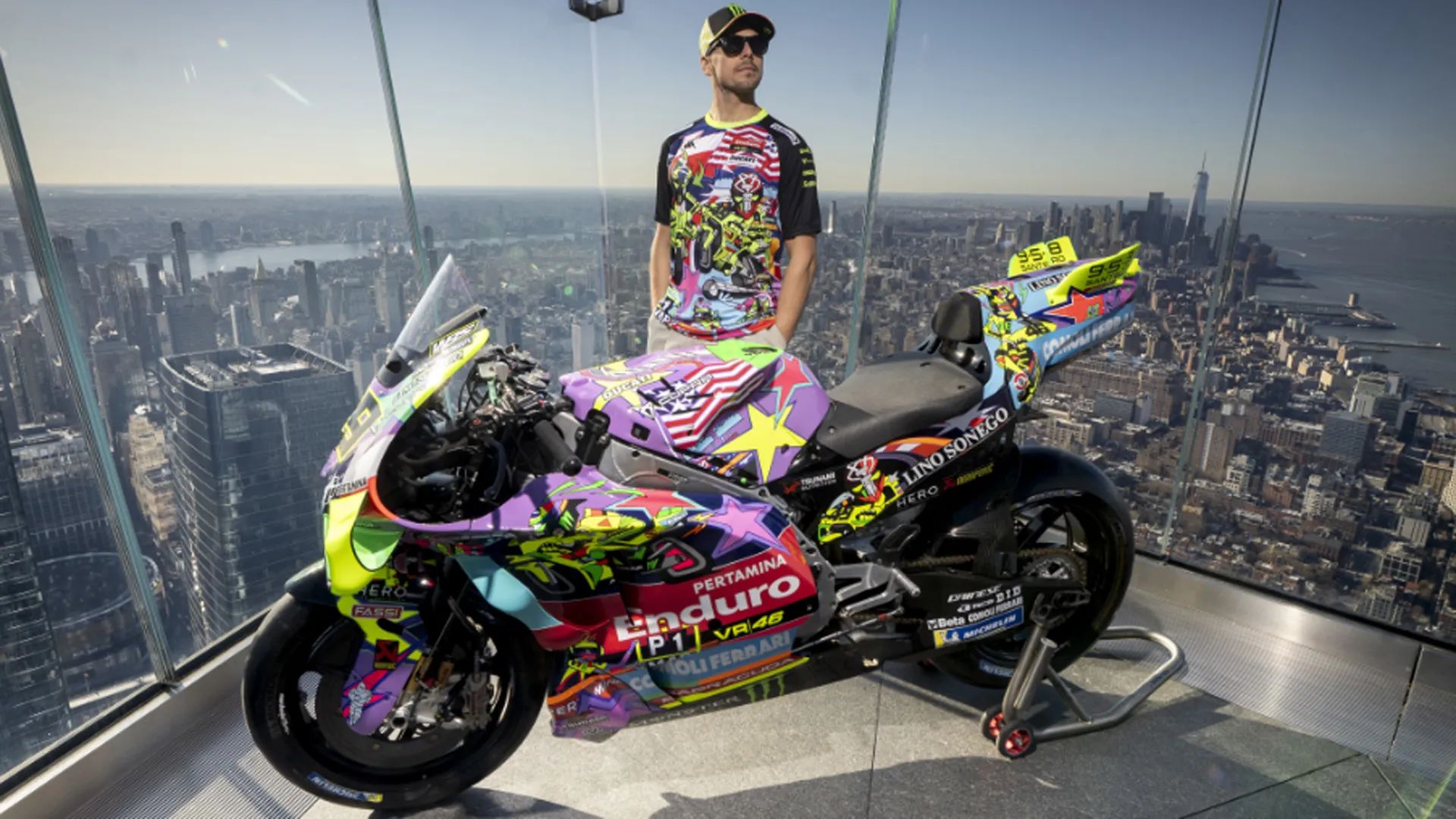 Nella suggestiva cornice della “Grande Mela”, Fabio Di Giannantonio e Franco Morbidelli hanno vissuto un’esperienza completamente a tema statunitense. La giornata è iniziata proprio all’Edge, dove è stata presentata la livrea con lo skyline di Manhattan sullo sfondo. Da lì ha preso il via un vero e proprio tour americano: i due piloti hanno passeggiato per New York, fermandosi da Joe’s Pizza e visitando il celebre NYSE. La giornata si è poi conclusa con la loro presenza in prima fila alla partita NBA tra New York Knicks e New Orleans Pelicans.