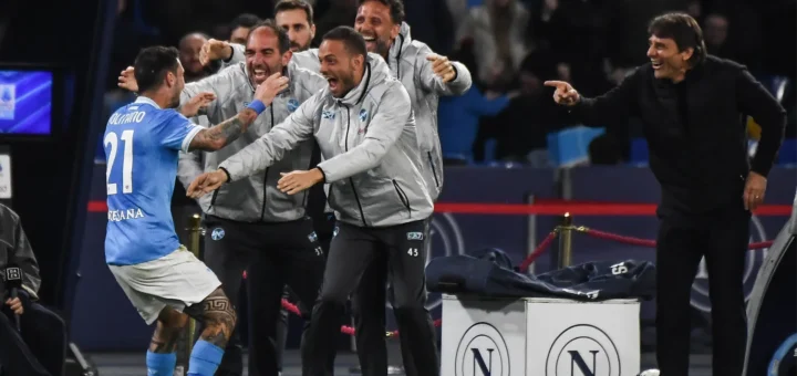 Momenti di apprensione allo stadio Stadio Diego Armando Maradona nel finale della sfida tra Napoli e Lecce.
